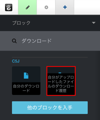 ブロック一覧より、自分がアップロードしたファイルのダウンロード履歴 ブロックをページ中に挿入します。