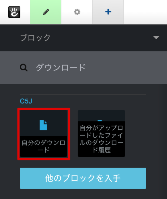 ブロック一覧より、自分のダウンロード ブロックをページ中に挿入します。