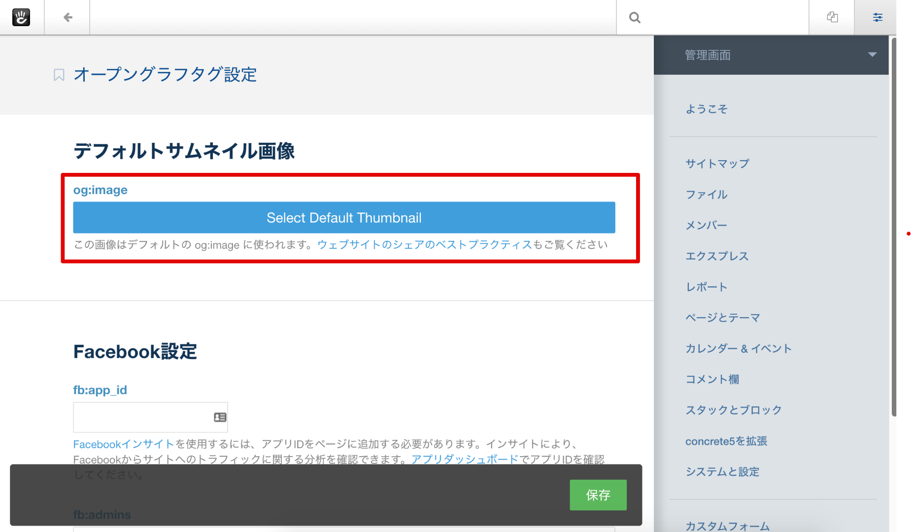 fb:app_id を利用せずに、個人Facebookアカウントのアカウントを使って管理する場合はこちらを設定します。