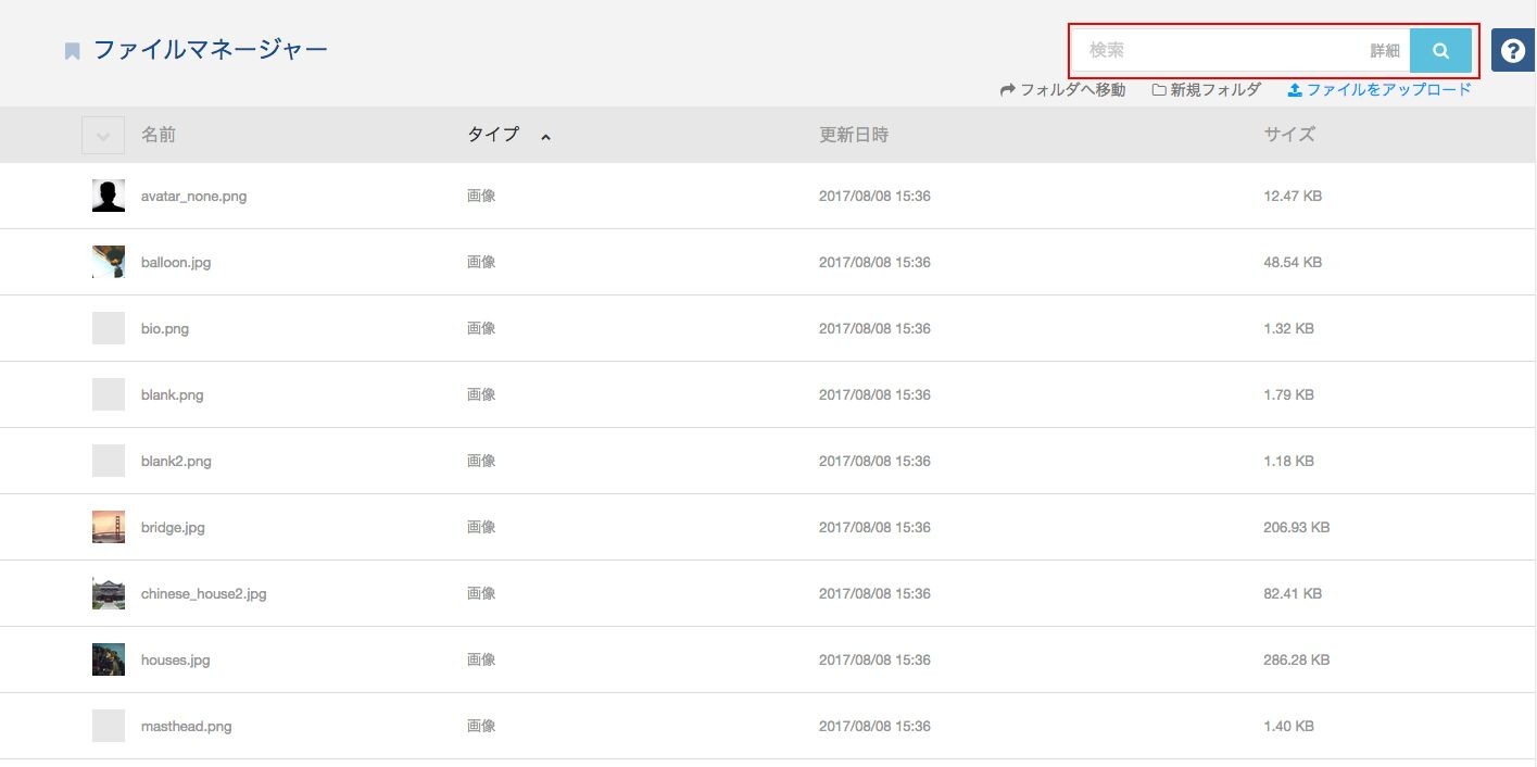 1.ファイルマネージャーを表示し検索窓にキーワードを入力して検索することができます。